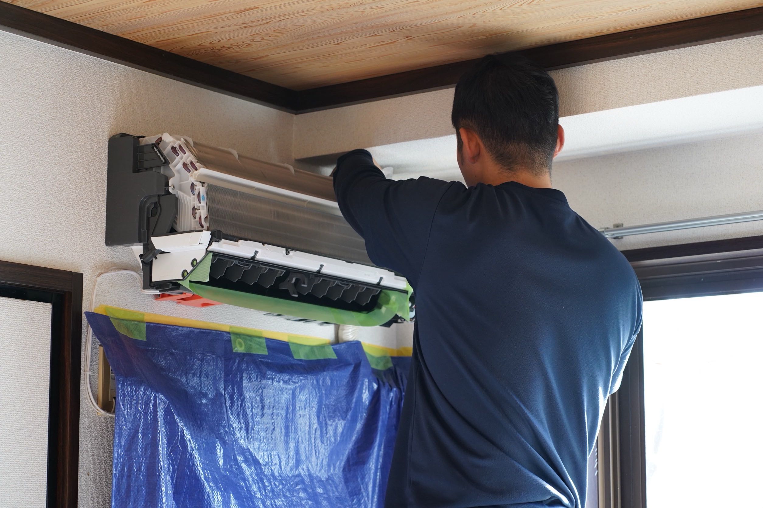 ご家庭の壁掛けタイプのエアコンを分解し、高圧洗浄機でクリーニングをします。 汚れや臭いが気になる方、エアコンの効きが悪く感じたり、最近電気代が上がった様に感じる方におすすめです。